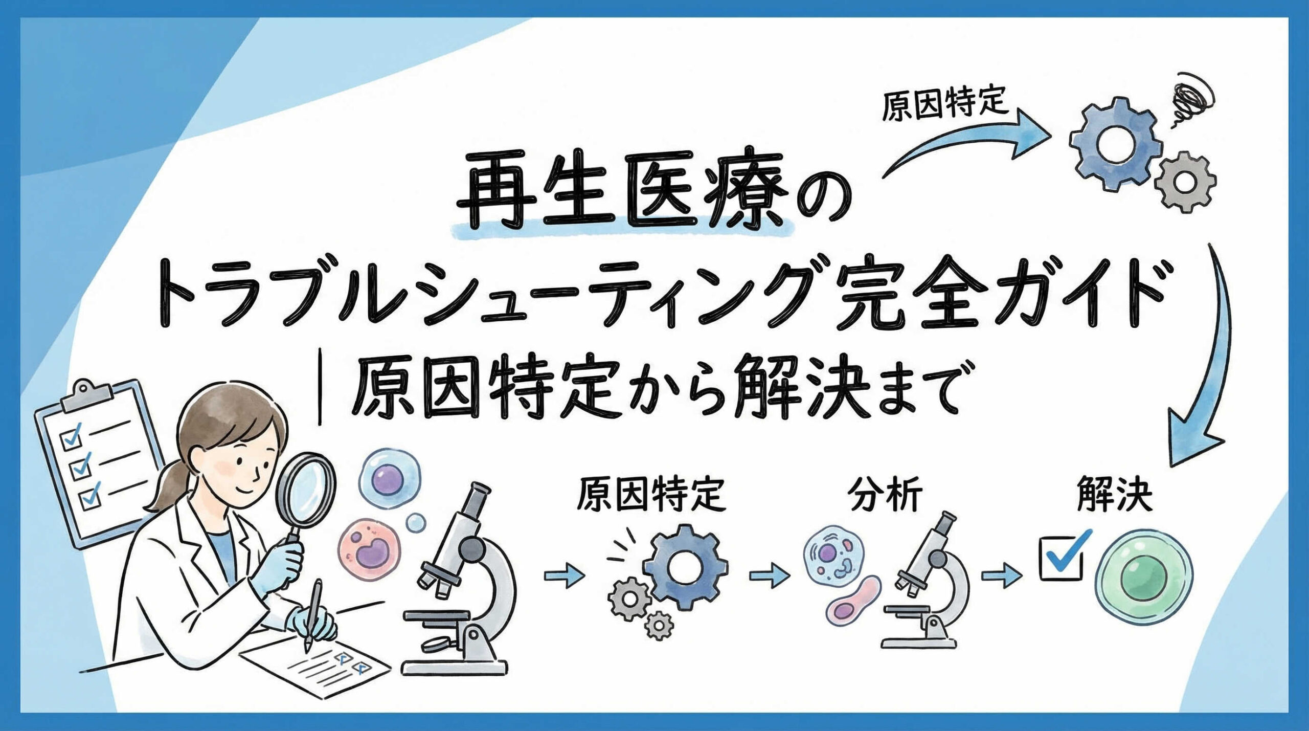 本記事では、再生医療現場におけるトラブルシューティングの基本原則から、具体的な事例別の対処法、そして論理的な原因特定のプロセスまでを体系的に解説します。